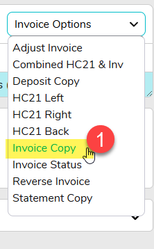 1. Under the Invoice Options Drop down in the Episodes screen, select ‘Invoice Copy’