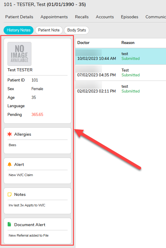 A new Patient Summary Panel has been added across all screens under the Clinic tab within a patient file. This panel provides quick visibility of key patient details, including demographics, allergies, alerts, notes, and document alerts. This ensures important information is easily accessible at all times.