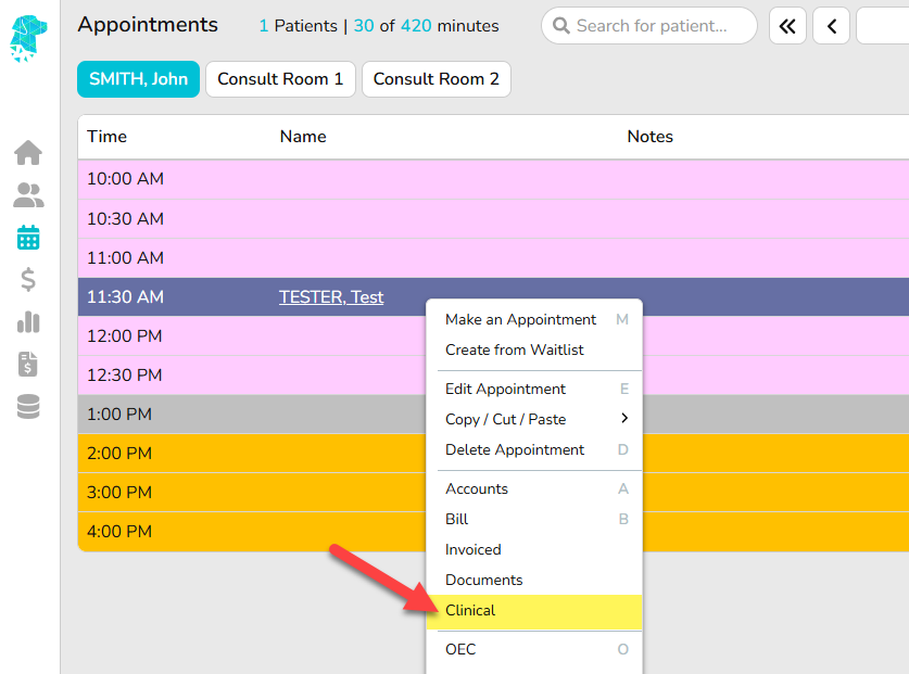 You can now access Clinical directly from the right-click menu on a patient’s appointment.