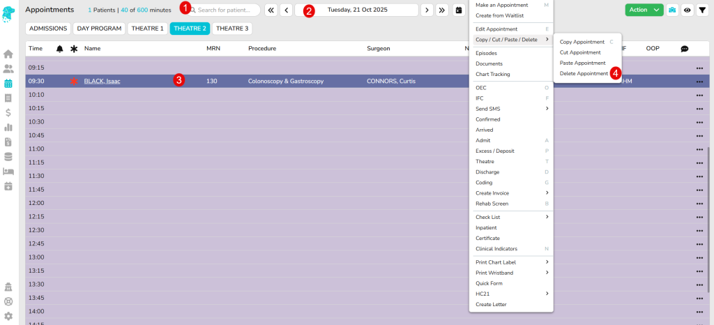 Select Copy/Cut/Paste/Delete and then select Delete Appointment