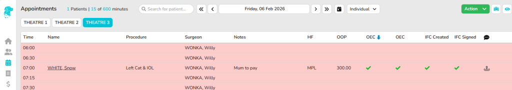 This provides staff with real-time visibility, right on the Appointments Screen, of which patients have completed their IFCs and which are still outstanding โ€” without any manual intervention.