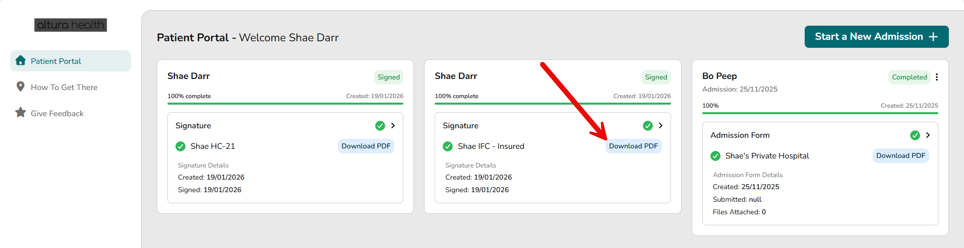 Once signed, the IFC remains available to the patient via their Preadmit Portal at any time.