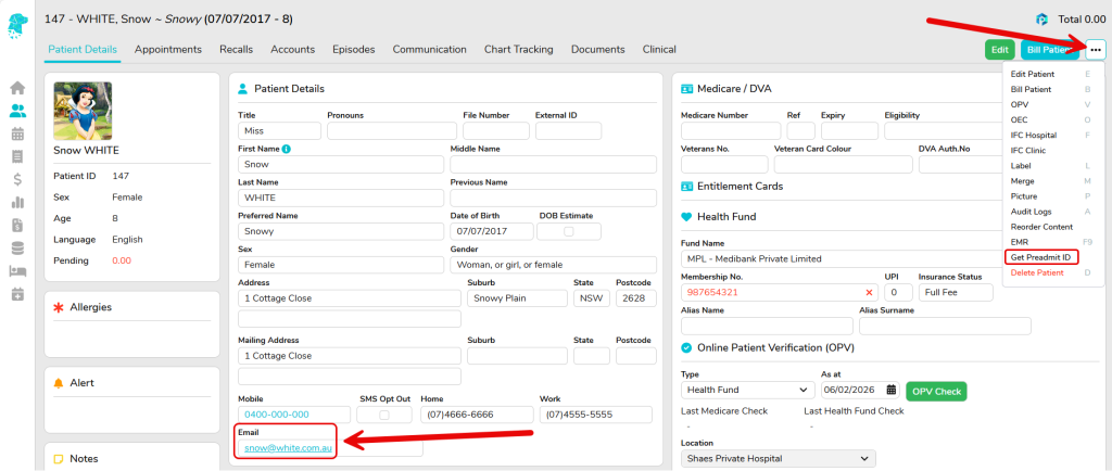 Patients are linked to their Preadmit Portal via the Email Address that they use to log in. FYDO can check existing patients utilising the Get Preadmit ID feature on the Patient Screen for patients with a valid email address entered.