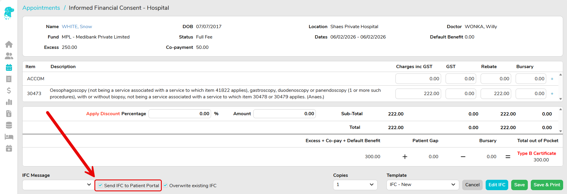 2. The IFC is sent digitally to the patient via their Preadmit Portal.