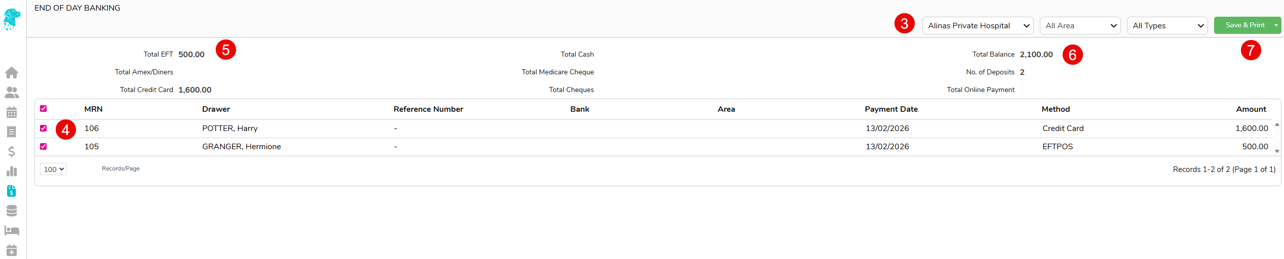 - Ensure Totals match the EFTPOS settlement & cash/cheques taken