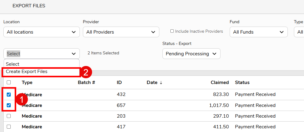 • Export – The status of the batch. By default, you will be filtered to claims that have not been exported yet.