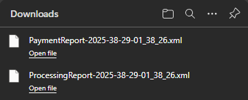 5. FYDO will then download the appropriate files. You will receive a separate file for Processing and Payment reports.
