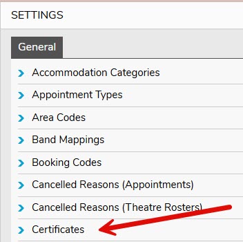 A new improvement has been made regarding the addition of certificate reasons in patient records. In the Settings tab, you will now find an option for Certificates, where you can define and add your certificate reasons.