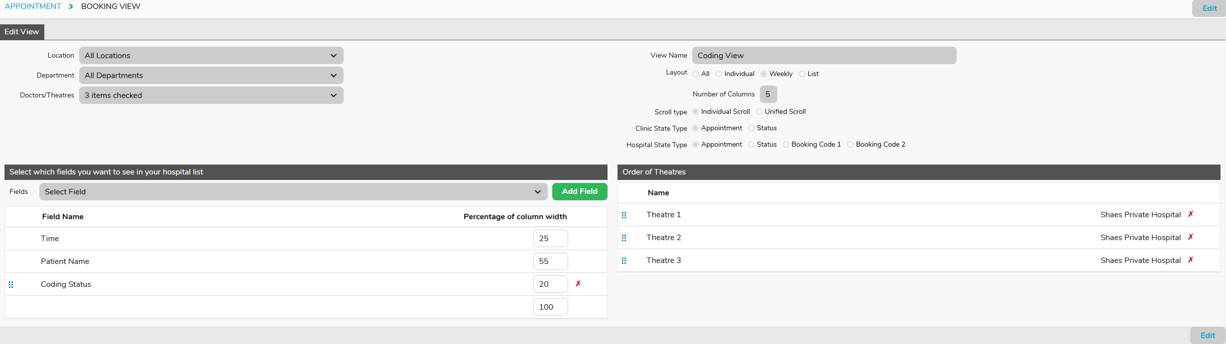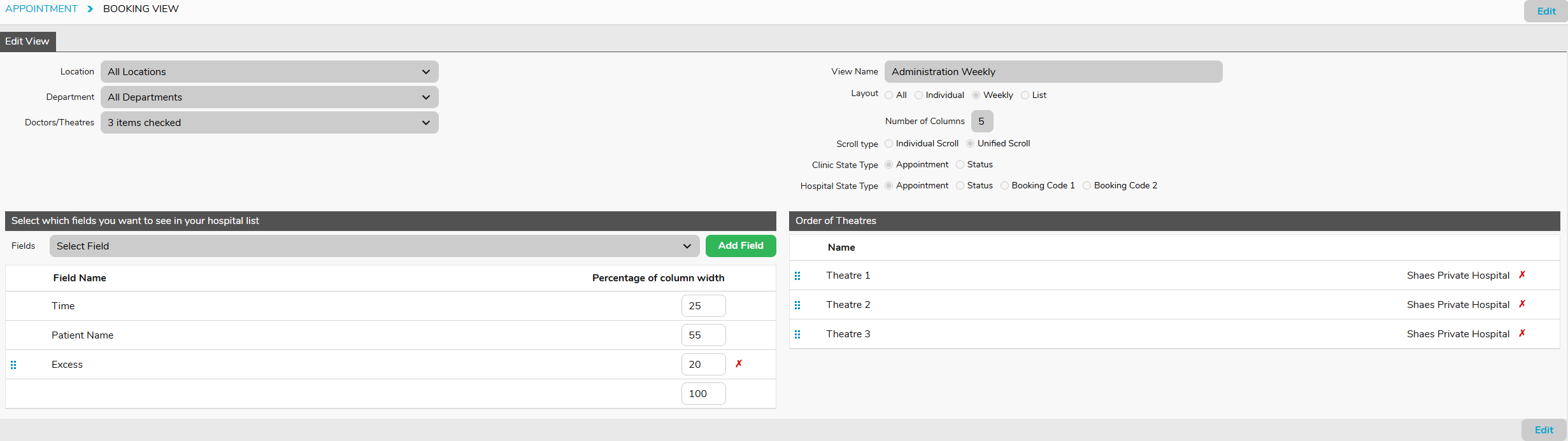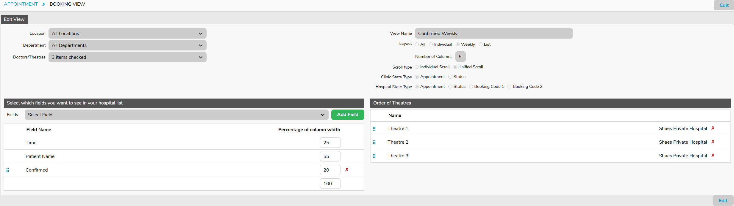 All custom views that are created for each facility are available to all users. Each user is then able to select their favourite view to open as their default. These instructions will provide ideas for different views & the set up required to accomplish them. For further details on how to create custom views please see the page on Creating Custom Views