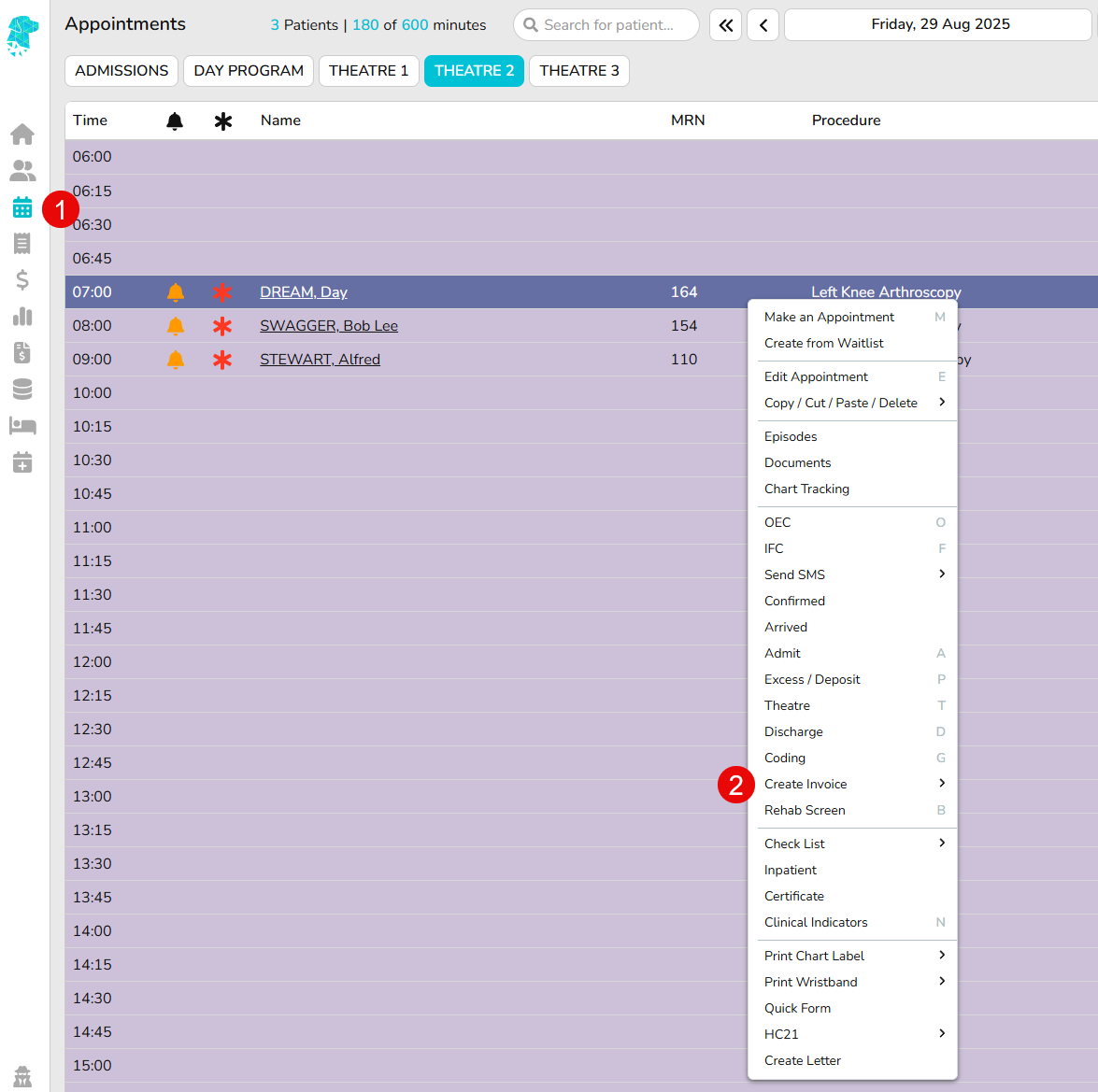 3. Procedure Items being billed (drawn from Theatre Screen if entered)