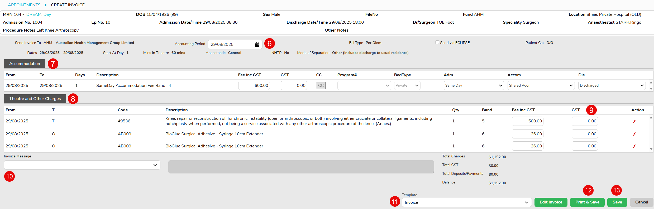 Once the episode is complete, an invoice can be raised to a health fund or patient.
