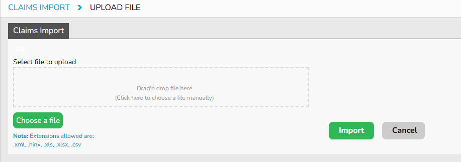 Please note, only certain file extensions are accepted: .xml, .hinx, .xlsx and .csv