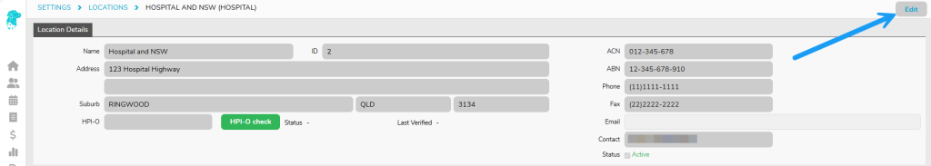 Double click on the required Location & Click Edit