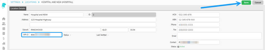 Enter in the organisations HPI-O and click Save