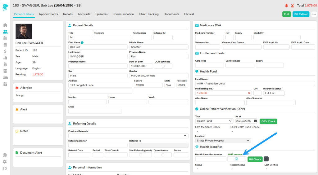 FYDO will automatically verify the IHI Number when the patient is added to the database for the first time.