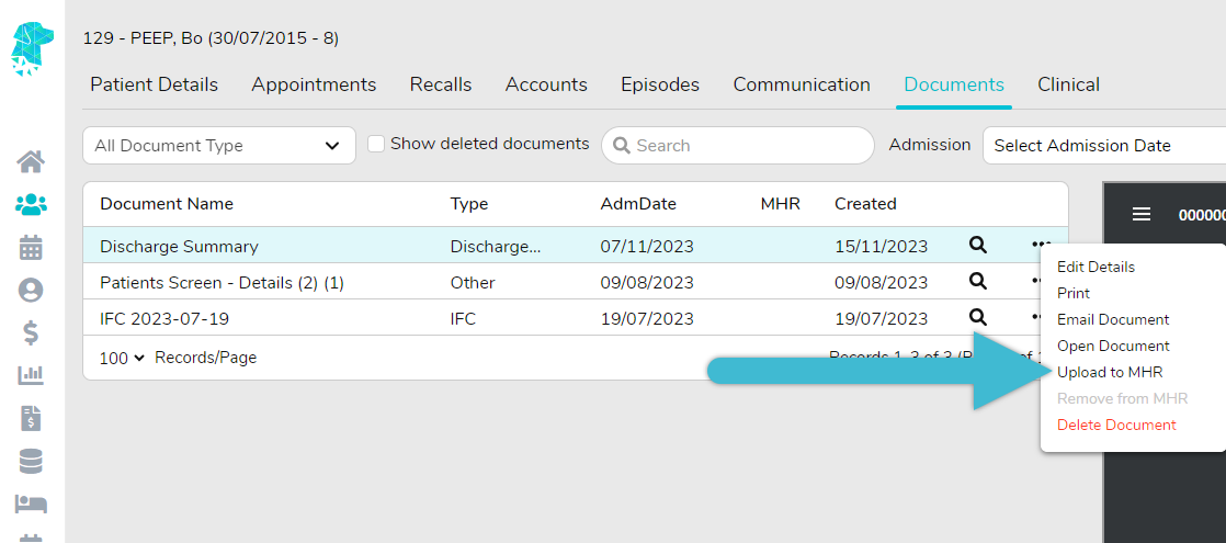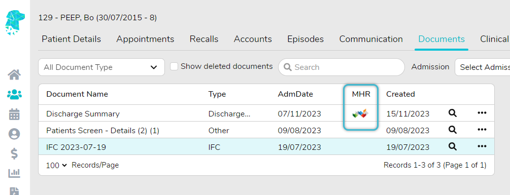 Once it is established that the MHR Consent box is ticked, navigate to the patient’s Documents.