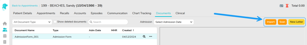 Utilise the Import or Scan feature to import a document or create a New Letter using a template that you have previously loaded into FYDO.