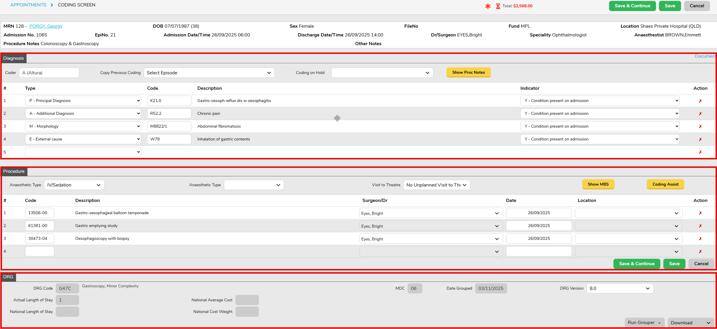 - Ensure Episode is Coded and Grouped, by completing the Diagnosis, Procedure and DRG sections in the Coding Screen – see Hospital Coding – FYDO Wiki