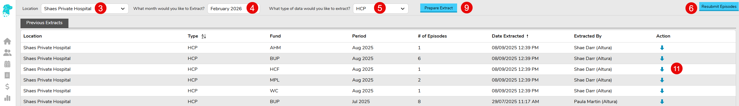 1. In the original Data Extract screen, ensure the correct month is still selected (as per instruction number 4 above)